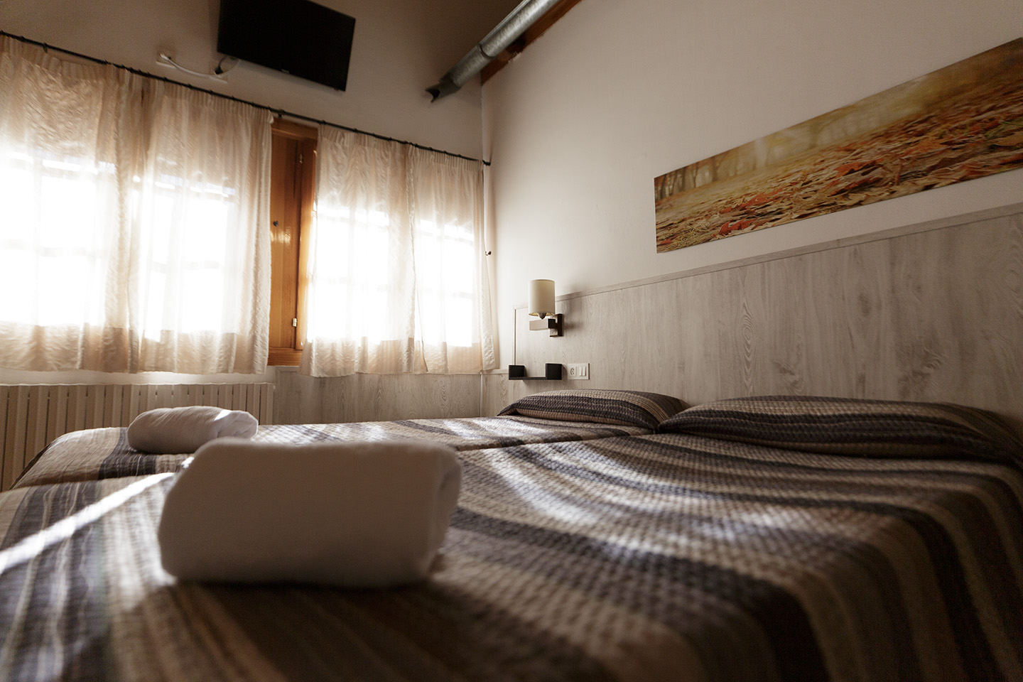 The superior double rooms offer views of the town square, are comfortable, and you can choose between a room with a balcony or a wooden loft ceiling.